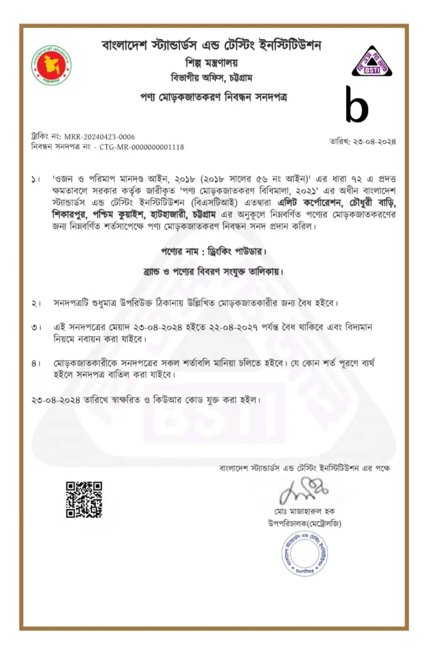 আলহামদুলিল্লাহ আমাদের পোডাক্ট বিএসটিআই অনুমোদিত।